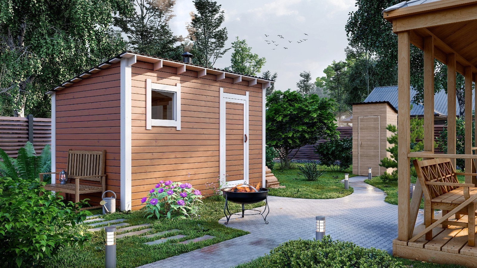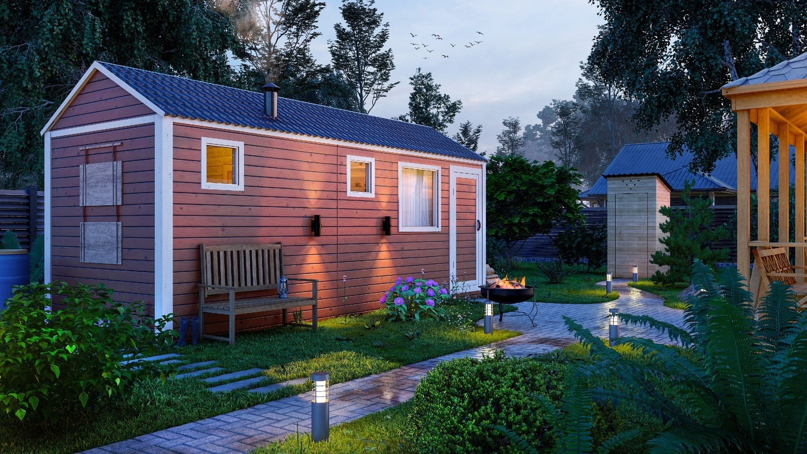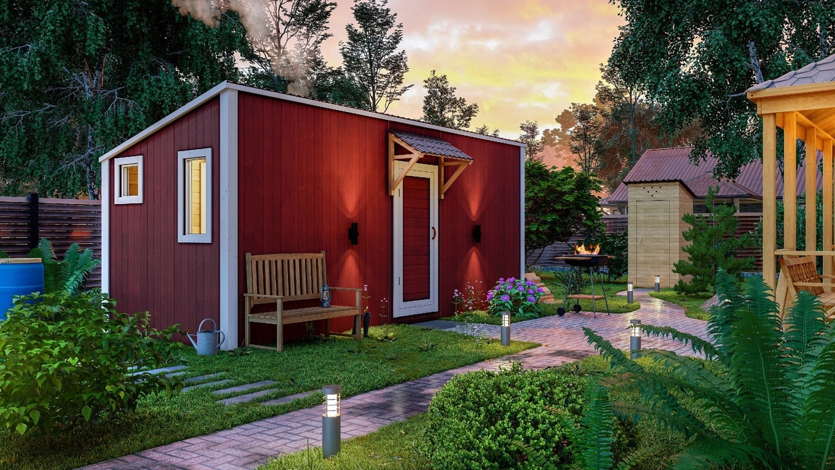 • Баню можно перенести в любое место на участке и даже перевезти на другой участок