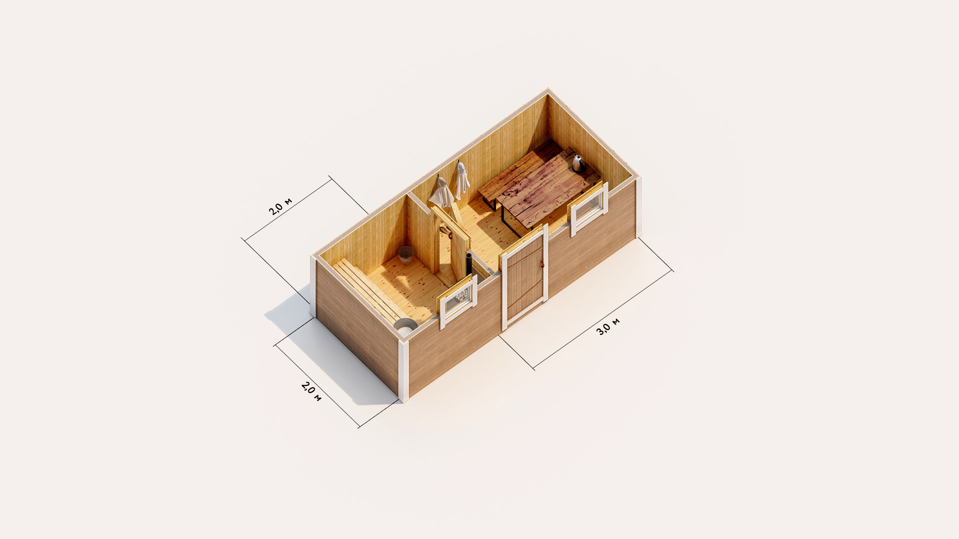 • Внешние размеры 6*2,4 метра